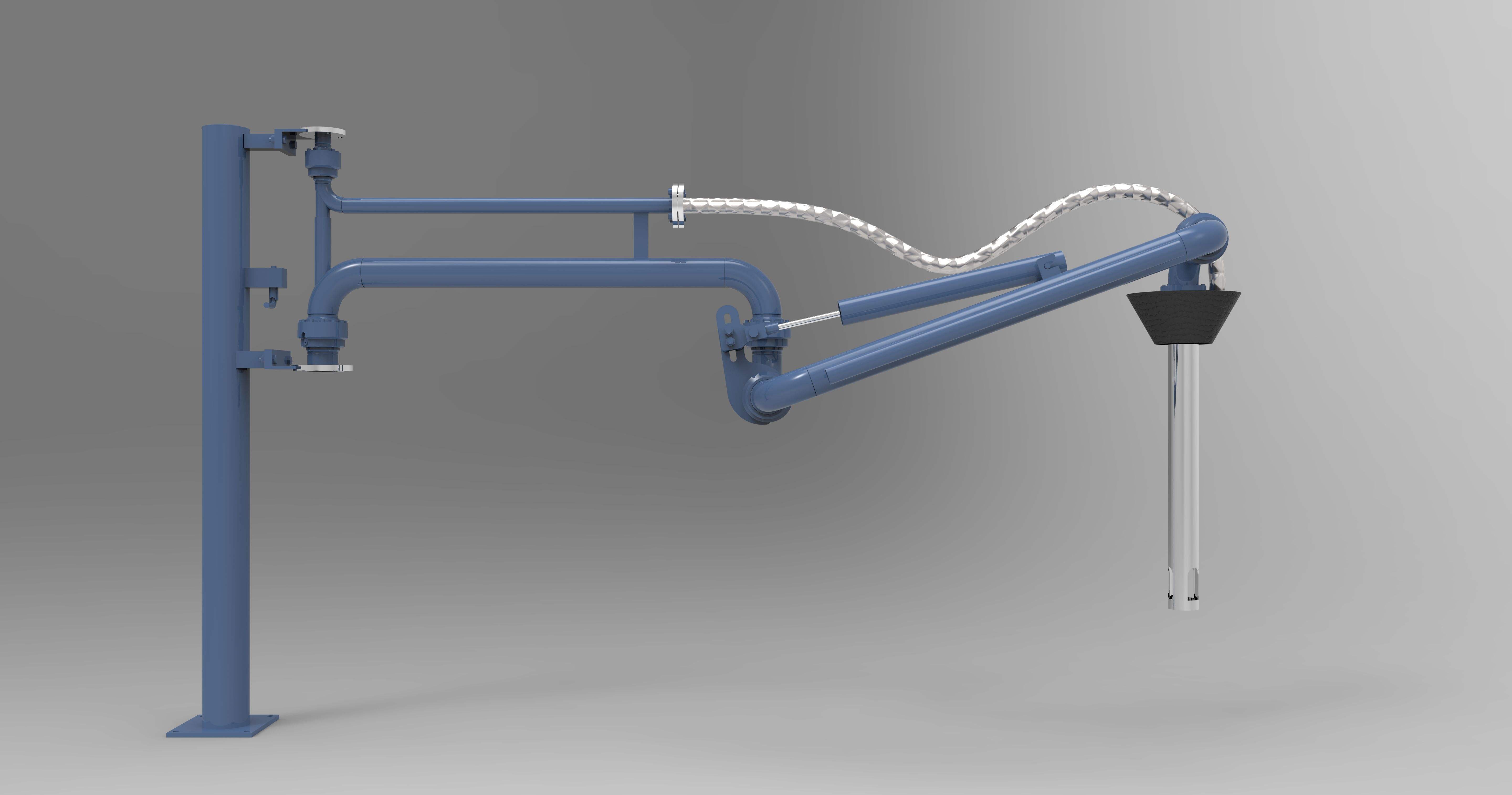 火車鶴管要求鶴管具有足夠的長度及移動(dòng)空間(高度、水平距離),以保證實(shí)現(xiàn)列車進(jìn)入裝卸棧臺后達(dá)到不摘鉤對位、浸沒式裝油和卸油作業(yè)的要求,并滿足安全要求。火車鶴管需要?dú)饷苄院谩⑤p便靈活、操作方便。